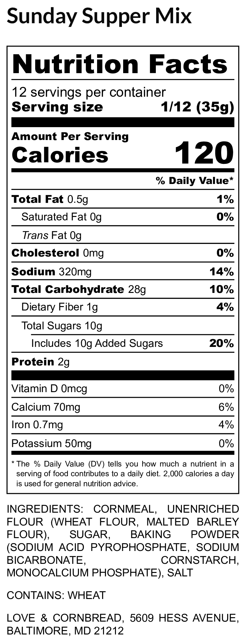 ABOUT US: We’re more than just a mix. At Love & Cornbread, we believe everyone deserves food made with love. We make our cornbread from scratch with the best ingredients we can find, and now you can too. Every mix you purchase helps us provide delicious, healthy meals for hungry kids in Baltimore City. Together, let’s spread the love…and cornbread!